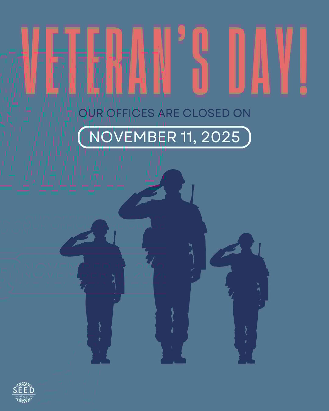 Upcoming Office Closure - S.E.E.D. Office Closure for Veteran’s Day